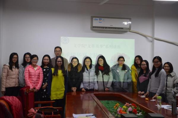 11月23日,文理楼306举行“传承华夏文化,留住中国传统文明之根”讲座。本次讲座由文学博士、中国石油大学文学院副教授、古代文学专业硕士生导师、汉语国际教育专业硕士生导师王永豪担任主讲人,文学院2016级中国古代文学专业和汉语国际教育专业研究生参加此次讲座。