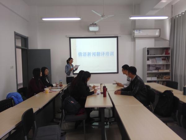 培训期间,现场气氛活跃,参训的学生们边听边记,在一问一答的互动中,逐步加深对俄汉新闻翻译的理解。此次培训使俄语笔译的同学们对俄汉新闻稿的翻译与写作有了较全面的认识,增强了同学们撰写俄语新闻稿的积极性,也对文学院俄语网站的建设工作起到了推动作用。