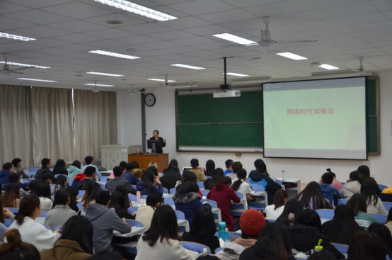 为拓展同学们的视野,加强学术交流,文学院特邀四川大学文学与新闻学院院长、博士生导师,北京师范大学博士生导师李怡教授于2017年11月16日在我校南教401作了题为《网络时代读鲁迅》的学术讲座。讲座由文学院副院长魏学宝主持,文学院教师、研究生和本科生等共百余人到场聆听。