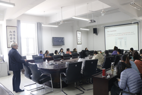 4月18日,加拿大萨斯喀彻温大学语言中心主任David M. Parkinson来我院就开展留学交流项目与我院师生进行座谈。英语语言文学系、音乐系、美术系等教学单位师生参加了座谈。期间,David M. Parkinson介绍了萨斯喀彻温大学及其所在语言中心的基本情况、专业设置以及前期与中国高校合作项目的开展运行情况。与会师生围绕暑期英语实践交流项目、联合培养、短期访学、学术合作等共同关心的问题与David Parkinson主任积极交流咨询,现场气氛热烈。经过此次活动,参与座谈师生对萨斯喀彻温大学有了基本了解,并对未来可能开展的合作与交流有了初步想法和规划。
