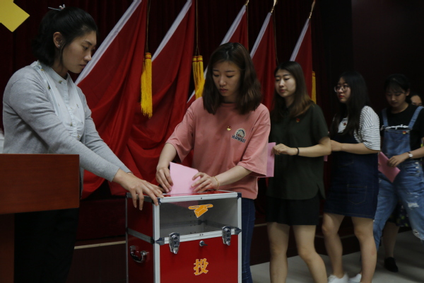 党员代表大会第二阶段由院长王学栋主持,总监票人梅琳公布党委委员候选人名单,现场投票选举7名党委委员。计票期间,党委书记张永宁带领全体党员重温入党誓词,代表们观看党风廉政视频进行党性教育。经过投票,大会选举王学栋、王新博、孙大满、张永宁、韩淑芹、邹维忠、魏学宝等七名同志为文学院新一届党委委员。