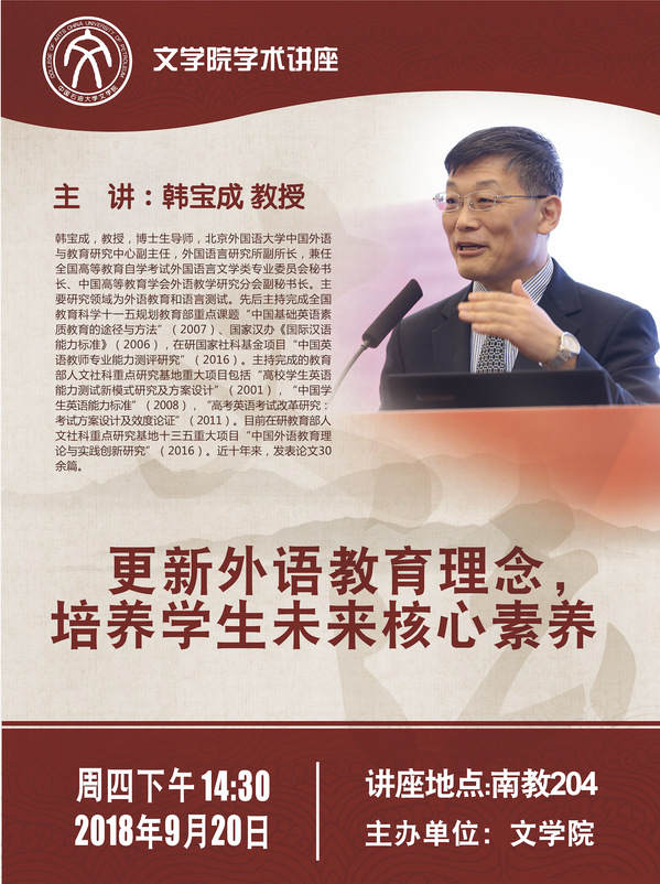 【学术讲座预告】更新外语教育理念,培养学生未来核心素养