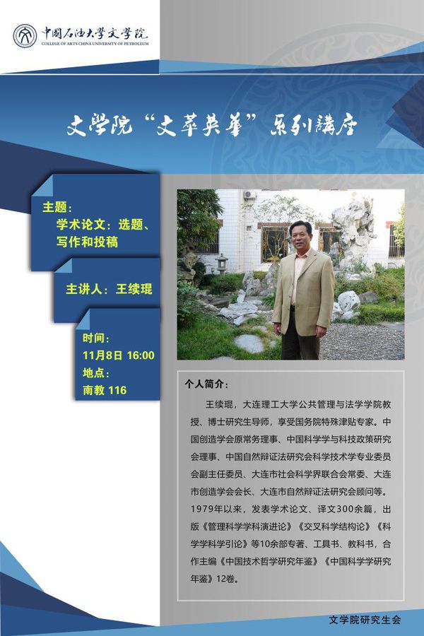 【学术讲座预告】学术论文:选题、写作和投稿