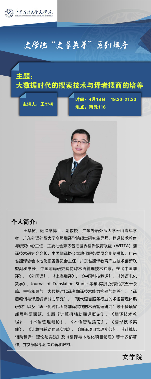 【学术讲座预告】大数据时代的搜索技术与译者搜商的培养