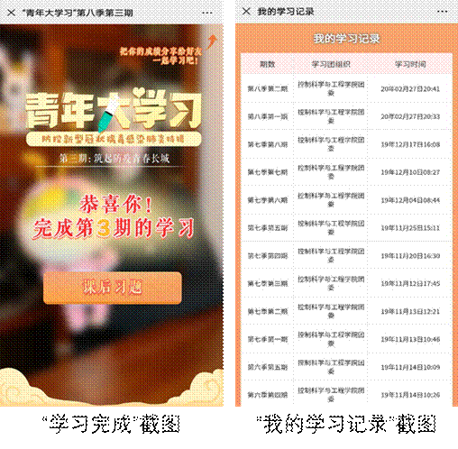 为了让同学们熟悉流程,完成第八季第1至3期答题学习的学生可凭页面截图由团支部审核并累计在答题次数内。