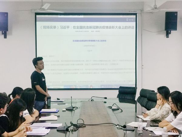 会议组织学习习近平总书记在在全国抗击新冠肺炎疫情表彰大会上的讲话,深入了解疫情期间党和全国人民做出的努力。从党和国家领导人到工作在一线的医护人员再到隔离在家的群众,万众一心,为这场特殊的“战役”而努力。中共预备党员宋开在学习后感慨:“抗疫斗争重大战略成果的取得,显示了中国人民不屈不挠的坚强意志,彰显出中国共产党作为一个百年大党的卓越的政治定力、政治勇气和执政能力,也进一步证明了中国特色社会主义的优越性。作为一名新时代的中共预备党员,我倍感自豪。”面对突如其来的疫情,我党统筹兼顾、协调推进,生产生活秩序稳步恢复。习近平总书记说“青年是国家和民族的希望”在抗疫战斗中,青年一代的突出表现令人欣慰、令人感动。青年一代不怕苦、不畏难、用肩膀扛起如山的责任,展现出青春激昂的风采,展现出中华民族的希望!“民安,则国安。此次疫情中,我党坚持人民至上、生命至上,以坚定果敢的勇气和坚忍不拔的决心,同时间赛跑、与病魔较量,有力改变了病毒传播的危险进程,最大限度保护了人民生命安全和身体健康!”2017级中共预备党员江彩雯说。