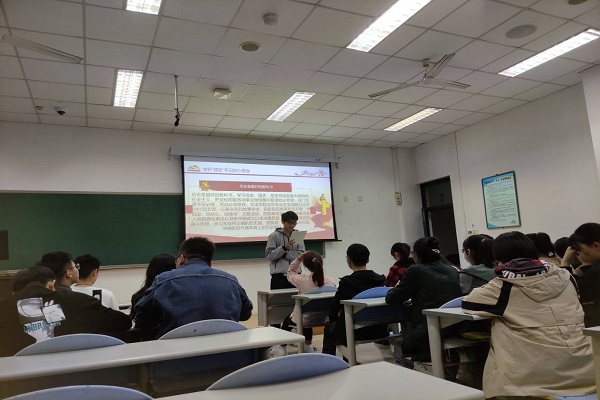 主题教育活动分为挖掘革命先烈典型事迹、观看《党史故事100讲》建国篇、“四史”知识竞答三部分。会上,党支部成员和团支部成员分享了革命先烈的英雄事迹。法学2001团支部亓宗政分享了杨根思烈士的事迹及自己的感受,他说道:“杨根思虽然献出了自己年轻的生命,但其精神一直广为流传。他的‘三不相信’,不相信有完成不了的任务,不相信有克服不了的困难,不相信有战胜不了的敌人,应该作为精神瑰宝为我们今天的共青团员深刻继承和发扬。”