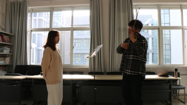 10月30日上午永利yl23411集团在文理楼306为本次参加学校青年教师讲课比赛的老师们,进行了赛前演练和指导。此次参赛的两位老师是音乐系的小提琴教师郭颂和舞蹈教师张志雄。参赛课程均属于音乐系技能类的课程。