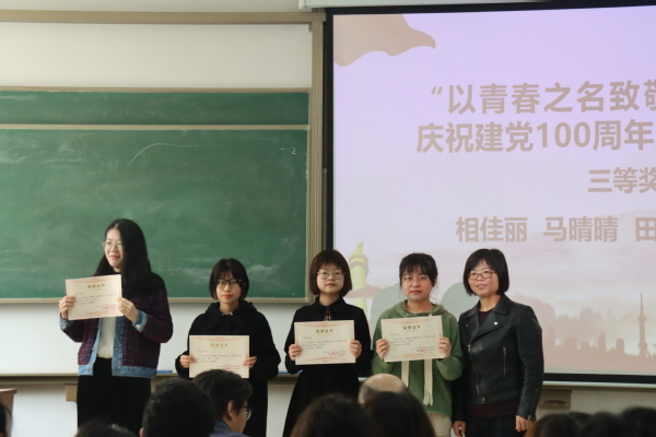马丽丽副教授为庆祝建党100周年主题征文三等奖学生颁奖 周治君摄