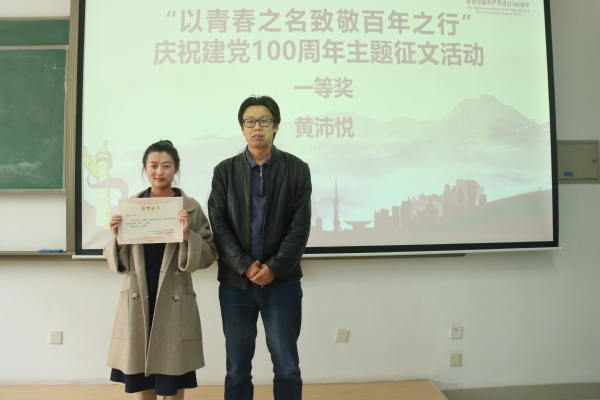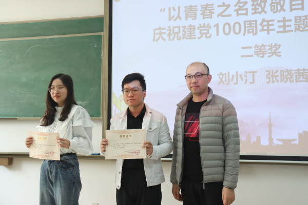 康雷闪副教授为庆祝建党100周年主题征文二等奖学生颁奖 周治君摄
