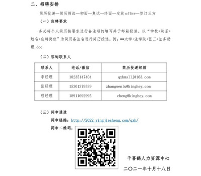 1. 北京千喜鹤HR