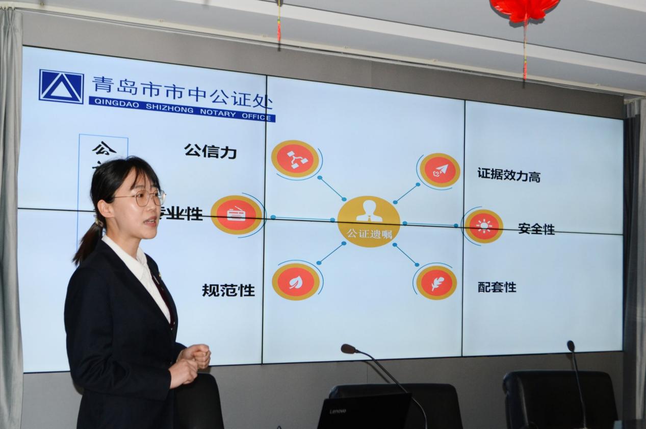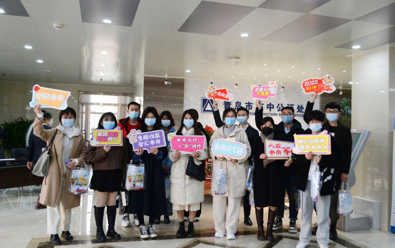 “寒假在家时,就报名参加了“青雁归巢”青岛学子新春座谈会,就业大礼包、糖果点心、防疫举措等等各种暖心的小细节让我很感动,之后一直关注后续的系列活动,没想到一开学就看到了市南游学活动的通知,我第一个报了名。”2月25日下午,在青岛市市中公证处,法学研2001班孟宇说。