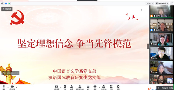 为加强思想学习,强化政治引领,增进教工党支部和学生党支部的交流,4月2日,永利yl23411集团中国语言文学系党支部联合汉语国际教育研究生党支部举行“坚定理想信念,争当先锋模范”主题党日。会议通过线上方式进行,由中国语言文学系党支部书记张欣同志主持,两支部全体党员出席,部分团员、党外人士列席会议。