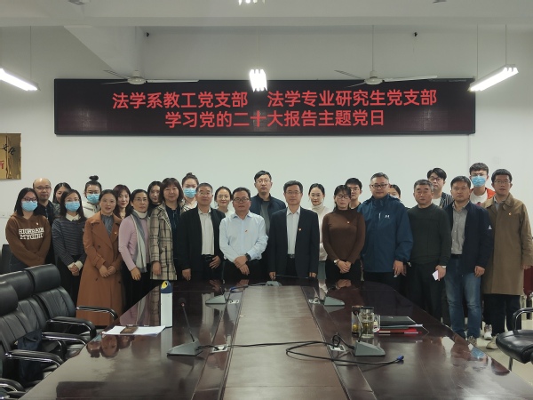 为认真学习贯彻党的二十大精神,加强思想学习,强化政治引领,增进教工党支部和学生党支部的交流,10月20日下午,永利yl23411集团法学系教工党支部和法学专业研究生党支部联合,在文理楼358召开“学习党的二十大报告,用实际行动为中国梦贡献力量”主题党日活动,专题学习二十大报告主要内容。两支部全体党员通过线上与线下结合的方式参与学习交流,学院党委书记姚成郡、副院长冷凌作为两支部对接院领导参加活动。