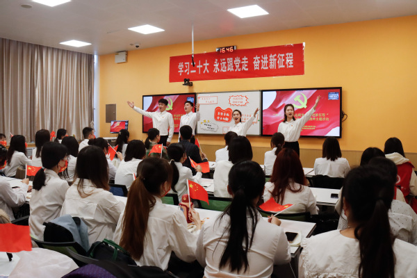 活动伊始,全体支部成员共同观看了视频——“数字里的十年”,回顾了党的十八大以来取得的巨大成就。随后,汉语音乐专业学生第二党支部书记王家琪从带领支部成员学习了习近平总书记在党的二十大上作出的报告。