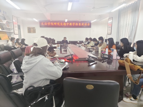 学院于11月8日上午在文理楼358会议室召开了期中教学检查座谈会,学院副院长魏学宝、研究生教学秘书郭静以及2021级和2022级的法学、法律(法学)、法律(非法学)以及汉硕四个专业的研究生代表参加会议。