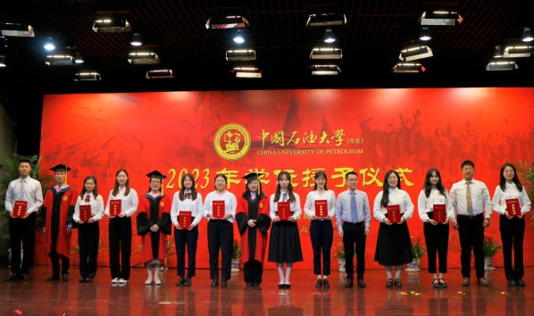 党委书记姚成郡宣读《关于表彰2023届优秀毕业生的决定》,张子壬等18名学生获评“山东省优秀毕业生”荣誉称号,王晓等20名学生获评“yL23411永利集团优秀毕业生”荣誉称号,王川文等25名学生获评“永利yl23411集团优秀毕业生”荣誉称号。