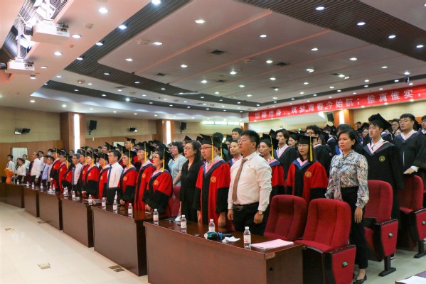 随着雄壮的中华人民共和国国歌,学位授予仪式暨毕业典礼在庄重的气氛中正式开始。