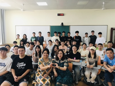在为期一周的课堂授课中,外教VALIEVA MASTURA与栾著老师带领学生探讨了文化与语言交流、经济工业、教育体系等内容,启发学生思考并进行跨文化比较,探究中塔两国的相同点和不同点。VALIEVA MASTURA表示:“学生们的学习热情和对文化的兴趣给我留下了非常深刻的印象,他们很积极地合作,提出自己的想法,真的非常棒!”