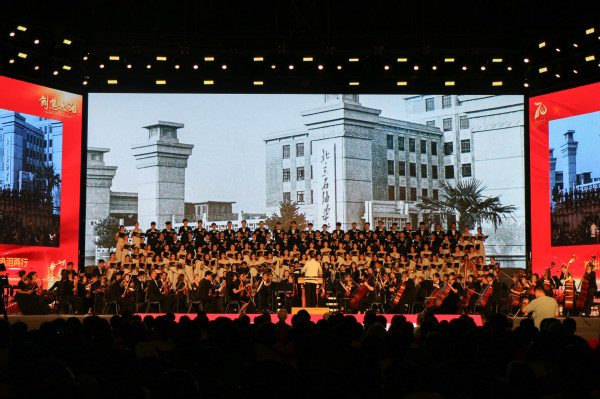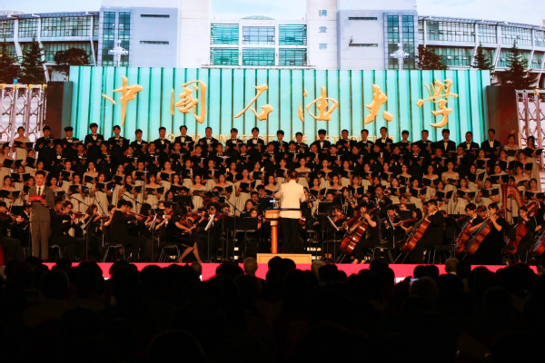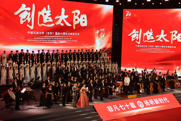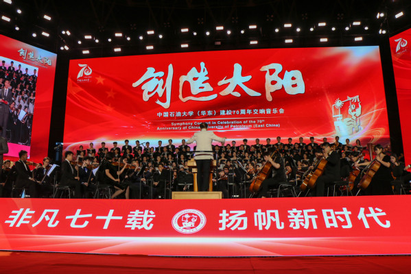 “几代人的拼搏努力,几代人的薪火传承,几代人的前赴后继,几代人的热血生命。”伴随着磅礴恢宏的乐声,建校70周年交响音乐会在《走向辉煌》乐章中拉开帷幕。1953年,新中国第一所石油高等学府的建校历史从北京郊外名为“九间房”的小荒村开始,《情系九间房》乐章将时间倒回70年前,一幕幕厚重的历史场景,伴随音乐逐渐浮现;为服务国家能源行业,学校后迁至黄河入海口,华东石油学院在东营盐碱地拔地而起,《荟萃湖畔》乐章将独属于石大人的东营记忆,以悠扬的乐声娓娓道来;《拥抱蔚蓝》乐章将时间推进到青岛办学时期,唐岛湾畔阵阵海风拂动每位石大学子的心;讲堂群的铃声、逸夫楼的钟声随着《莘莘学子》乐章的演奏,不断勾起校友们的青春回忆;在《师者风范》乐章,石大教师俯首耕耘、老骥伏枥的身影愈发鲜明,他们守得住清贫、耐得住寂寞,崇尚学术,坚持真理,对自己的事业爱得真挚;《巍巍钻塔》乐章展现一代代石大学子头顶青天、脚踏荒野,为祖国能源事业奋斗在油气田第一线的时代风采;最终章《继往开来》诉说着全体师生校友对石大建校70周年的美好祝愿和对学校未来前景的无限期望。