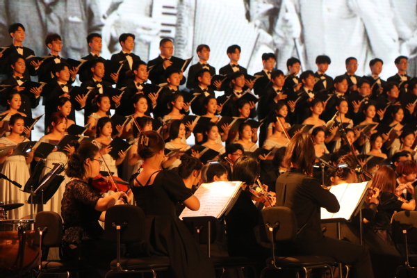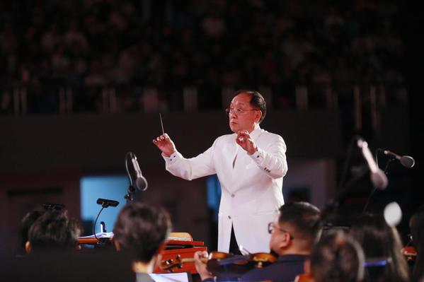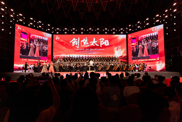 9月28日,学校建校70周年交响史诗音乐会《创造太阳》在体育馆隆重举行。校领导、来宾、校友及师生近4000人观看演出。