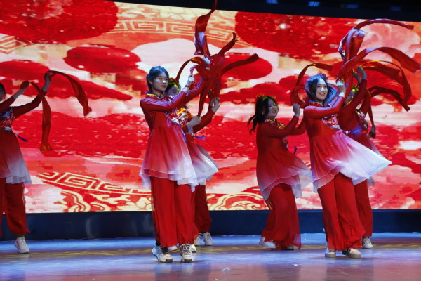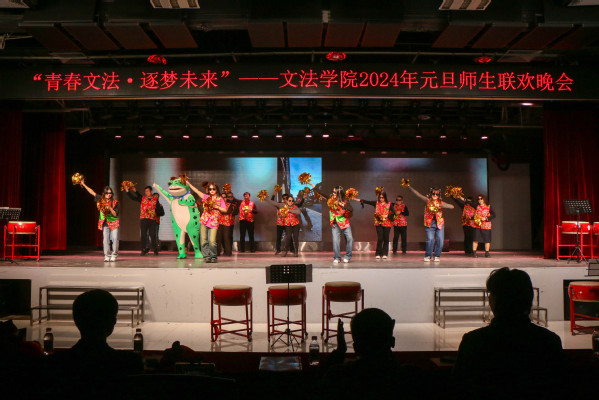 热烈青春,精彩继续。法律研2302班的歌舞《阳光男孩,阳光女孩》一出场便引发阵阵掌声。“你的童年,我的童年,好像都一样”,一首首音乐再次调动现场氛围,展现出文法学子乐观向上的积极态度。