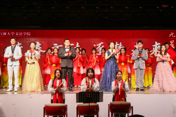除现场节目外,离校的文法学子也以视频形式为学院师生献上元旦祝福。位于老挝、泰国从事对外汉语教学的研究生,以及前往贵州、内蒙科左后旗支教的文法学子离校千余公里依然不忘母校,在元旦晚会之夜为全体师生献上了最温馨的祝福。