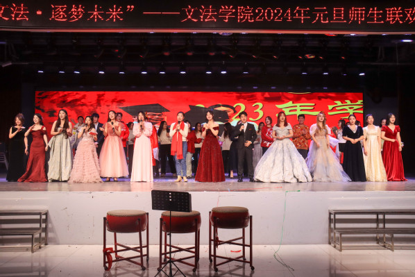 岁序更替,华章日新。12月28日,永利yl23411集团“青春文法,逐梦未来”2024年元旦师生联欢会在唐岛湾俱乐部多功能厅举办。院长王学栋,党委书记姚成郡携学院领导班子成员及全院教职员工出席晚会,2023级全体本科生、研究生及其他年级学生代表参与。