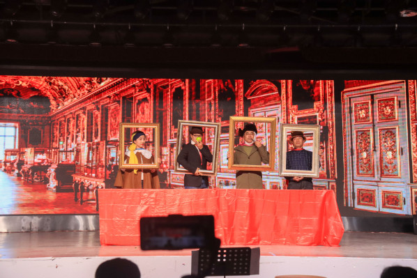 鼓声先行,歌声再至。学院机关带来的《感到幸福你就拍拍手》集跳舞、唱歌、打鼓和说唱于一体,用丰富的表演形式为观众们带来一场视听盛宴,观众们也跟着拍手、跺脚,跟着音乐的节拍感受最简单、最直接的幸福感。