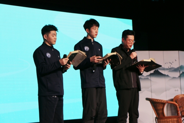 中国石油大学高水平男子排球队代表们朗读《狼图腾》节选