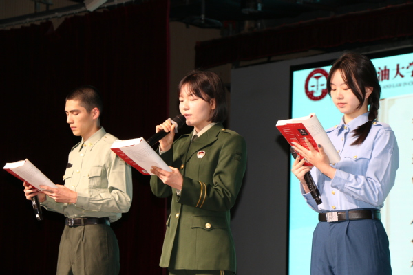 本次朗读大会以“访谈+朗读”的形式进行。而故事,就从一处地标性建筑——中国石油大学校史馆开始。习近平新时代中国特色社会主义思想概论教研室教师、副研究员、中国石油大学档案馆馆长刘积舜生动讲述了我校71年来与共和国发展共命运、与祖国石油工业同呼吸、与石油高等教育共奋进的光辉历程。一部《中国石油大学校史》,见证了学校的初心,校史是精神和信仰的传承,是初心和使命的担当,更是“立心,立根,立魂”的无价之宝。刘积舜将一代一代石大人以石大精神为轴心绘就的石大印记展现在与会师生面前。