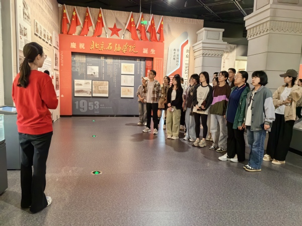 编年体展区以时间轴的形式纵向铺开,展现了我校历经三次更名,四次建校的校史沿革,先后在北京荒郊、东营盐碱滩、唐岛湾泥滩和古镇口荒滩上的艰苦创业;专题展区通过图文陈列、实物展示、多媒体交互等多种形式,生动全面地展示石大办学成果风采,感受到石大前辈们“我为祖国献石油”的壮志豪情;发展对象们欣赏艺术展厅所展示的书画、雕塑,体悟我校人文关怀和艺术底蕴。