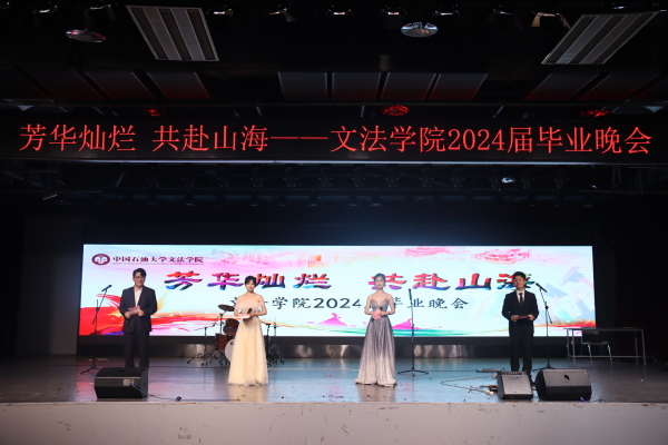 晚会在王佳欣、王若冰、王承旭、王绍瑞携手毕业年级辅导员于露、赵延升、李甜雨演绎的《同桌的你》中拉开帷幕。每一句歌词、每一个场景都在诉说着曾经的故事,那些关于友情、关于梦想、关于青春的记忆涌入脑海。共同走过四年青春时光,毕业生们回首这段旅程,心中充满了感慨与不舍,但更多的是对未来的期待与憧憬。