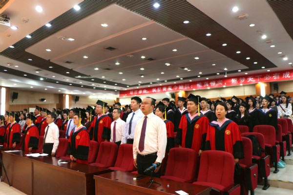 院长王学栋教授为每一位学位获得者一一拨正流苏,并颁发学位证书,现场氛围庄重热烈。
