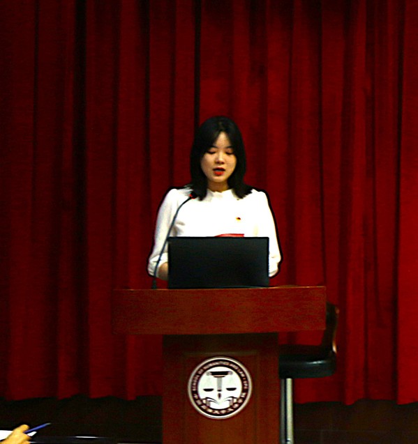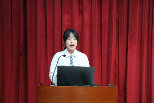 优秀学生党员李甜雨结合自己的学习和生活经历进行发言。她分享了作为一名学生党员如何在学习、工作和生活中践行党的宗旨并发挥党员先锋模范作用的经历,“作为一名青年学生党员,我们要勇于砥砺奋斗、实学实干、脚踏实地、埋头苦干、孜孜不倦、如饥似渴,在攀登知识高峰中追求卓越和全面发展”,李甜雨如是说,这引发了在场党员们的强烈共鸣。中共预备党员罗梦妍也在发言中明晰了青年党员的时代定位,她表示“新时代青年生逢盛世,是伟大时代的见证者,是国家事业发展的生力军、接班人”,立志以此次活动为契机,继续深入学习党的理论,提高自己的党性修养,在青春岁月中为家国建功立业。
