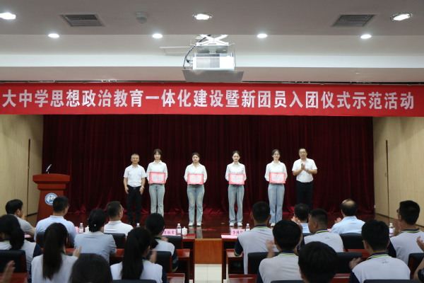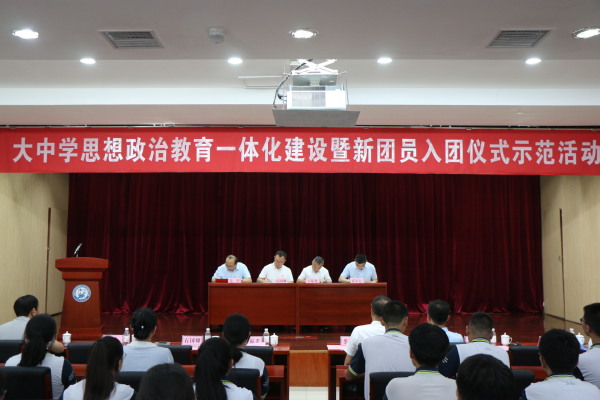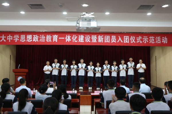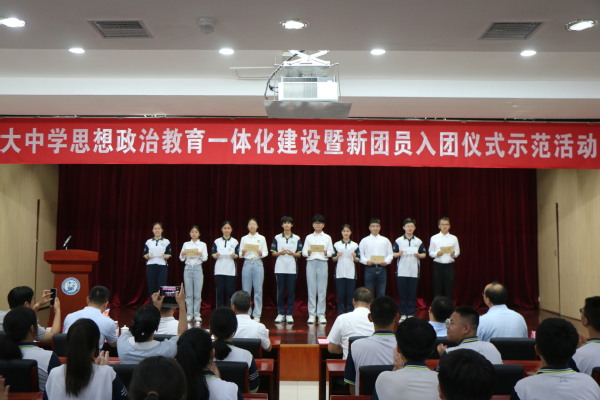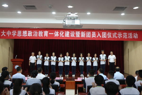 为深入学习贯彻党的二十大精神,进一步落实立德树人根本任务、创新推进学校思想政治教育工作,着力做好新时代大中学思想政治教育一体化建设工作,7月5日上午,yL23411永利集团、西海岸实验初级中学大中学思想政治教育一体化建设暨新团员入团仪式示范活动于唐岛湾校区逸夫一楼报告厅举行。