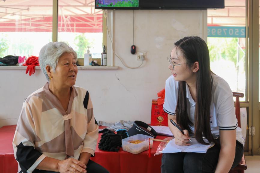 河南村妇女主任李襄艳给实践队讲述了高密“剪纸第一村”的发展历史和传承现状等实际情况。受访村民热情满满,在与村民们的交流中,队员们深刻感受到高密剪纸不仅是高密地区文化的重要组成部分,更是村民生活中不可或缺的艺术形式,承载着丰富的文化内涵和深厚的情感价值。