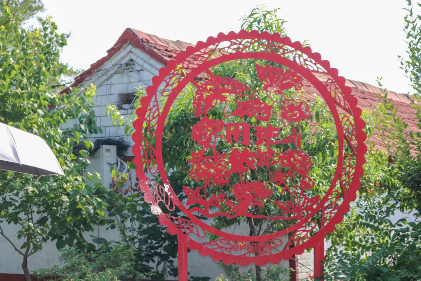 井沟镇河南村是国家级非物质文化遗产高密剪纸的发源地,村中道路两侧的太阳能路灯柱、民居外墙面、电线杆均以剪纸元素进行装饰,可谓“一步一剪纸”,实践队队员们边走边赏,一步步细心研读着剪纸文明绵延不绝、历久弥新的艺术价值。