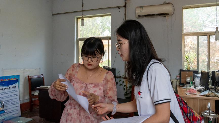 实践队在井沟镇政府发放问卷 李孟男摄