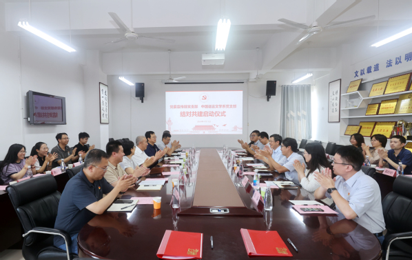 党委宣传部党支部、中国语言文学系党支部分别介绍了双方单位及支部建设基本情况,回顾了双方合作情况,共同签订了结对共建协议,同时为上半年入党的16名党员集体过政治生日并重温了入党誓词。