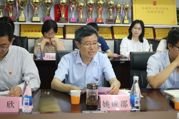姚成郡感谢党委宣传部对永利yl23411集团党委工作的指导和支持,介绍了永利yl23411集团党委近年来开展“四联四共”党建工作情况。他表示,永利yl23411集团党委将全力支持中国语言文学系党支部的共建工作,期望两支部通过组织共建、思想共建、业务共建,形成党建质量协同创优机制,联合深化理论学习,聚焦主责主业,进一步促进永利yl23411集团与党委宣传部工作有机结合,发挥好共建共赢效应。