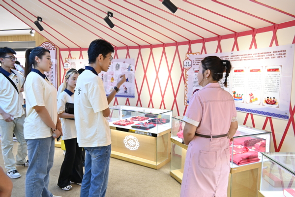 同心筑梦实践队乌日其其格讲解少数民族婚服 李越摄