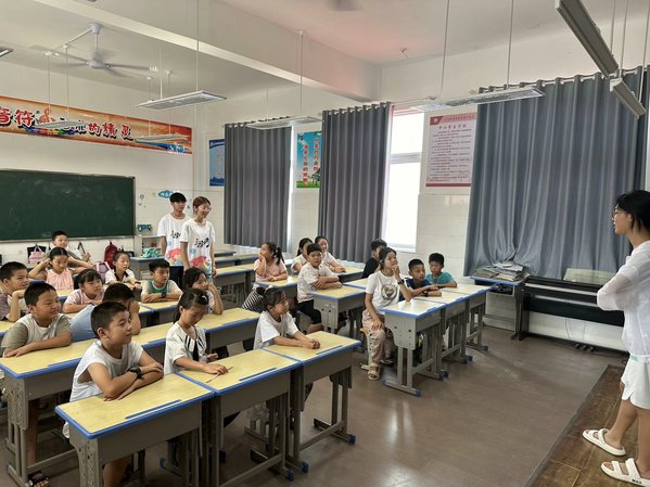 在一系列准备工作完成后,开营仪式在支教队和学校教师队伍及学生的期盼中开始。支教队代表和学生代表先后发言,表达了对本次夏令营的信心。支教行动不仅是一次知识的传授之旅,更是一次心灵的交流与碰撞。这种跨越年龄与地域的情感交流,也会为乡村教育的发展搭建坚实的桥梁。