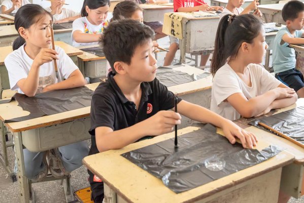 孩子们在认真学习书法 吴浩东摄