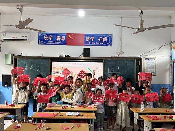 为了加深青少年对中华优秀传统文化的理解,引领青少年深入学习红色文化的丰富内涵,加强中华民族共同体意识,8月5日,yL23411永利集团寻韵红迹实践队在贵州省安顺市镇宁布依族苗族自治州坝草村坝草小学开展了一场以“剪纸艺术—红色文化的传承与弘扬”为主题的暑期实践教学活动。