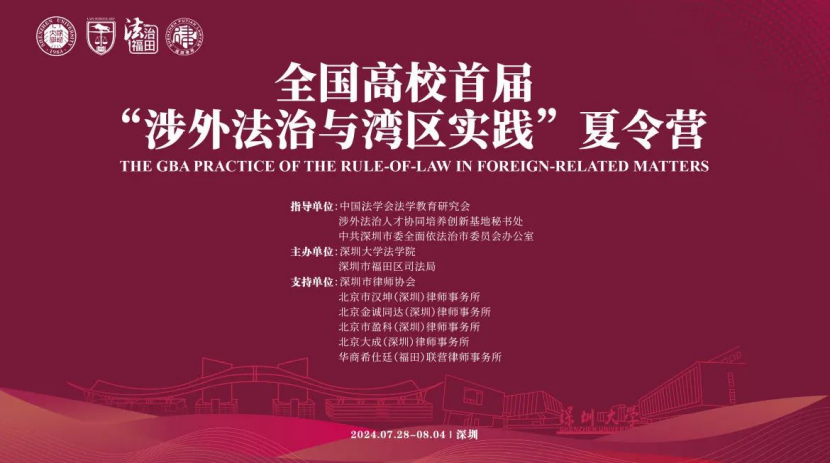 全国高校首届“涉外法治与湾区实践”夏令营由中国法学会法学教育研究会、涉外法治人才协同培养创新基地秘书处、中共深圳市委全面依法治市委员会办公室指导,深圳大学法学院与福田区司法局主办,深圳市律师协会等单位共同支持。来自指导单位、主办单位、支持单位和全国51所涉外法治人才协同培养创新基地的师生共计百余人参加了活动。