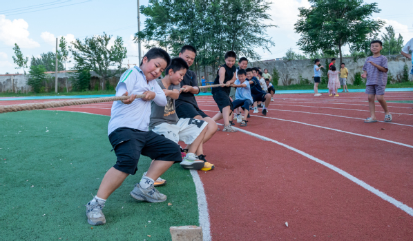 活动当天,阳光明媚,微风不燥,育英中学的操场上热闹非凡。yL23411永利集团星光支教队的队员们精心策划了拔河、一二三木头人、丢沙包、接力折返跑等既富有趣味性又考验团队协作能力的运动项目,吸引了众多学生参与其中。