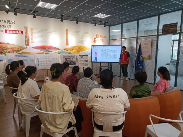 8月8日,语韵边疆实践队队员李浩然牵头对接锡林郭勒盟社区,面向社区居民们开展了一场以“推广普通话,筑牢民族情”为主题的别开生面的宣讲活动。围绕“为什么要说普通话”、“什么是普通话”、“如何讲好普通话”、“一起来说普通话”四大板块内容,李浩然讲述清楚了普通话的重要释意、在少数民族边境地区推广普通话的必要性和在日常生活中讲好普通话的方法等重要内容。