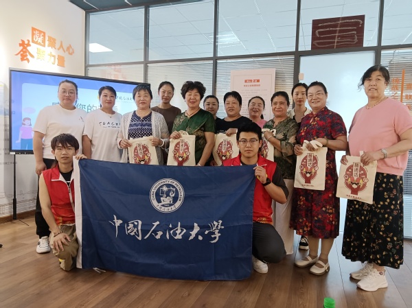 随后,为巩固宣讲效果,语韵边疆实践队队员采取“单字朗诵+句段朗读”的方式来让社区居民们亲身体会普通话,实践队队员举出“滞”、“喟”、“隘”等单字个例,让老人们体会到较为生僻的字的发音技巧,并随机列举了《白杨礼赞》和《读书人是幸福的人》两篇经典文章中的精彩句段,邀请老人们朗诵,实践队员根据朗诵情况现场一对一进行耐心的纠正与演示,得到了社区居民们的一致认可。在宣讲结束后,为增强民族间情感联系,语韵边疆实践队队员组织社区居民们开展了发放文创帆布包的活动,每个人脸上露出了灿烂的笑容。