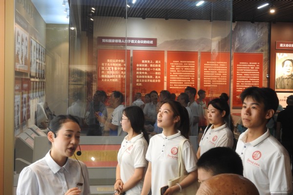 “红军不怕远征难,万水千山只等闲。”走进青瓦红墙、庄重肃穆的遵义会议会址,实践队先后参观了作战室和革命领导人当年的休息室,并认真聆听着讲解员的解说。那一幅幅珍贵的历史照片、一件件饱经沧桑的文物,生动地再现了遵义会议的场景和激动人心的历史故事,也让成员们感受到革命先辈坚定的理想信念和英勇无畏的奋斗精神。